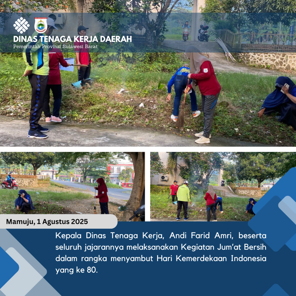 Kepala Dinas Tenaga Kerja, Andi Farid Amri, beserta seluruh jajarannya melaksanakan Kegiatan Jum’at Bersih dalam rangka menyambut Hari Kemerdekaan Indonesia yang ke 80.